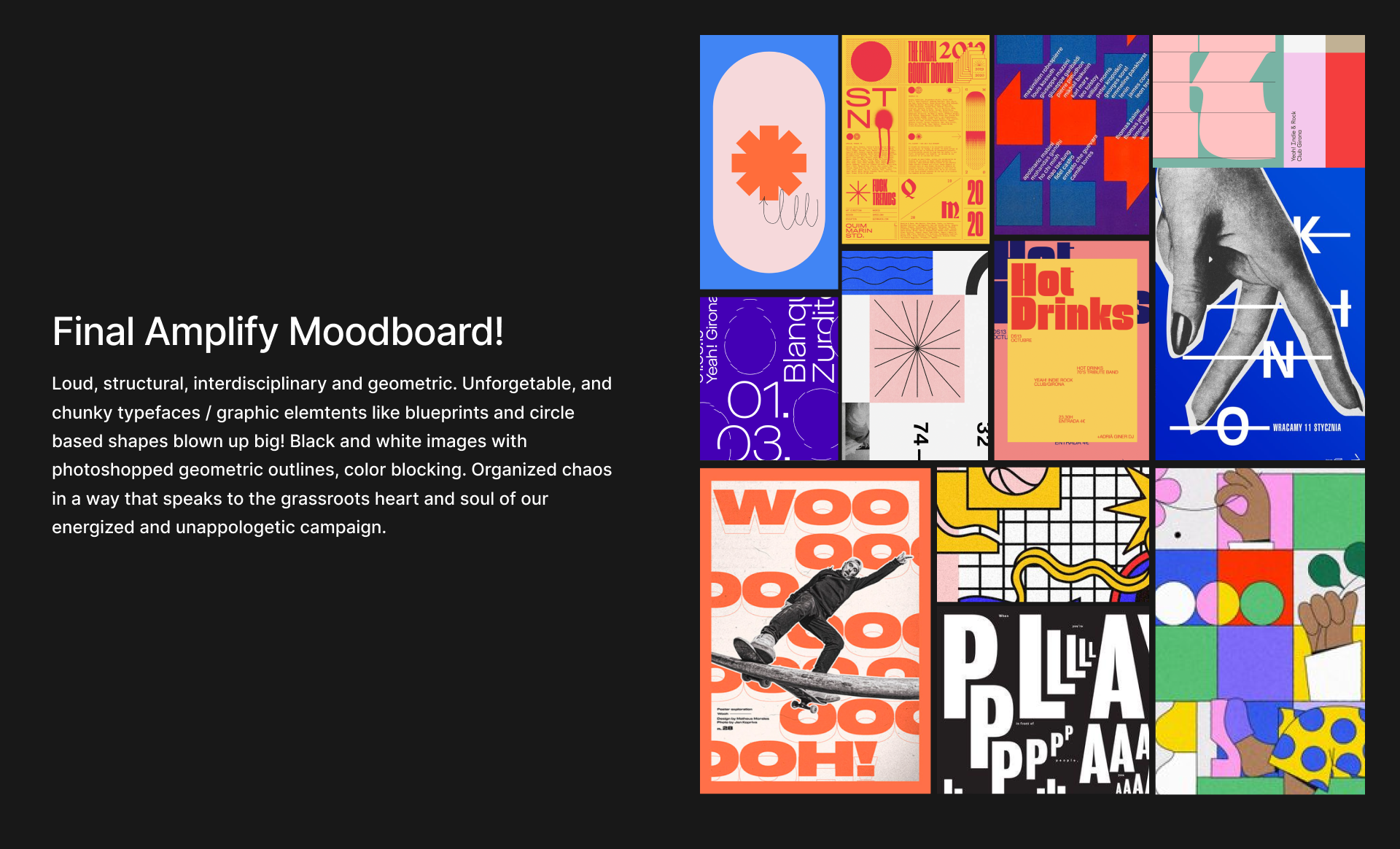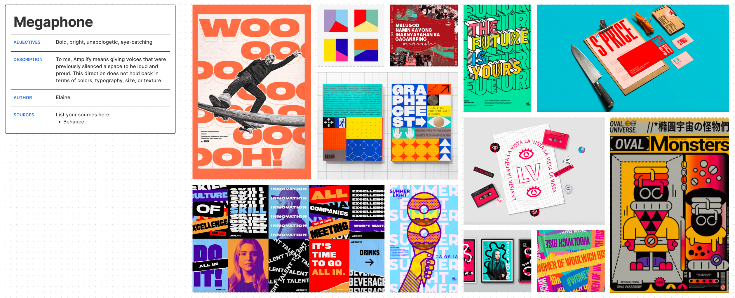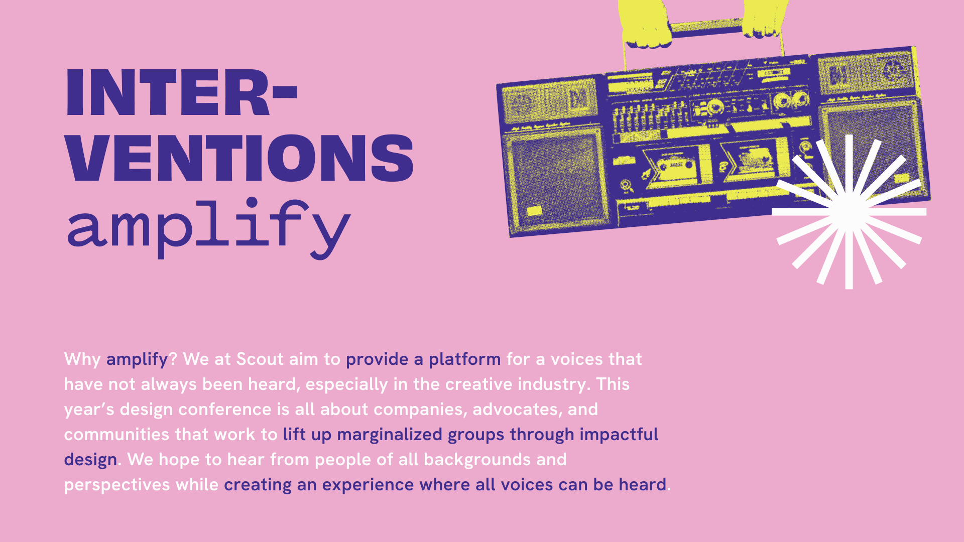 After deciding on a general tone, we moved into creating a central theme. My proposal, Amplify, focused on amplifying marginalized voices in design. Inspired by recent movements for social change, this direction would be vibrant and unapologetic.