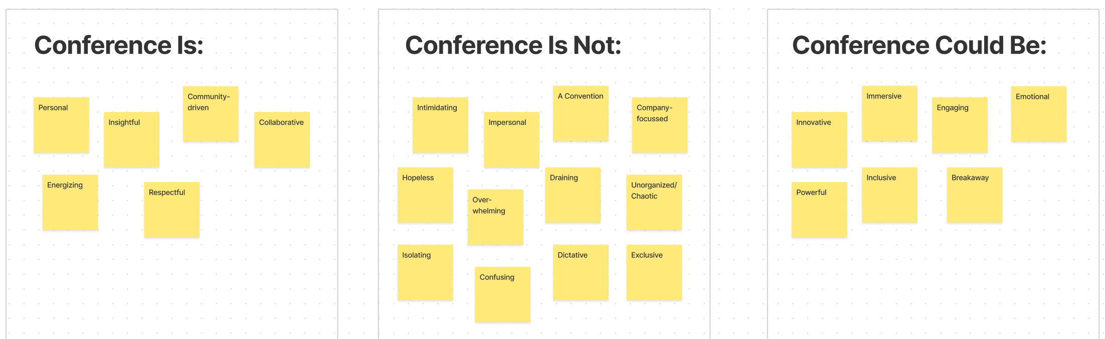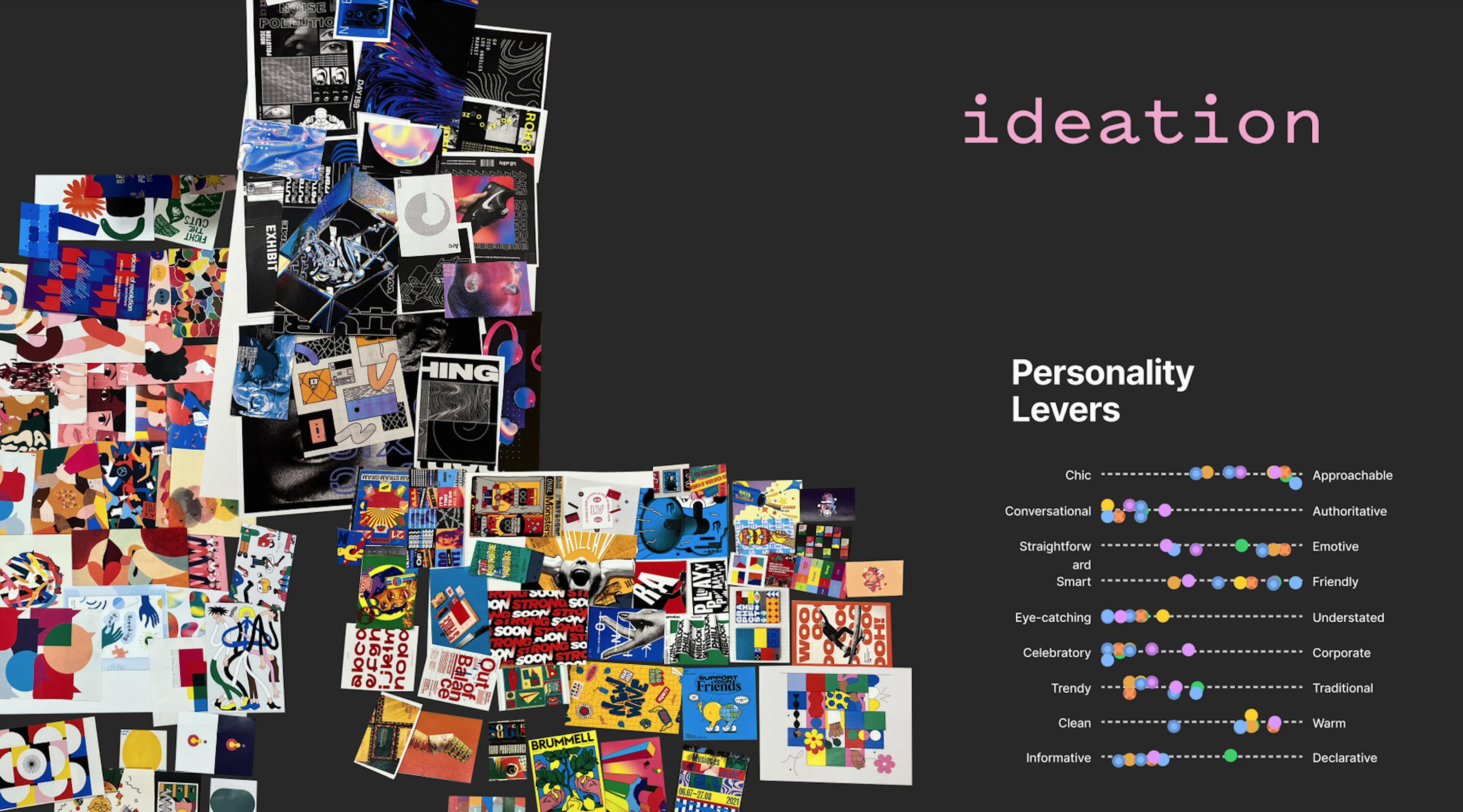 Starting with personality levers, we began to refine our identity. We wanted to celebrate our return to in-person with a bold yet approachable conference, making our mark but also rebuilding our community.