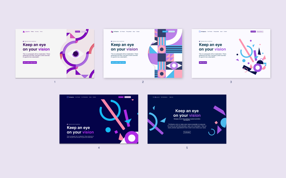 The clients noted that they were particuarly interested in geometric design and vision-related imagery, which I used as a starting point for our first iteration.